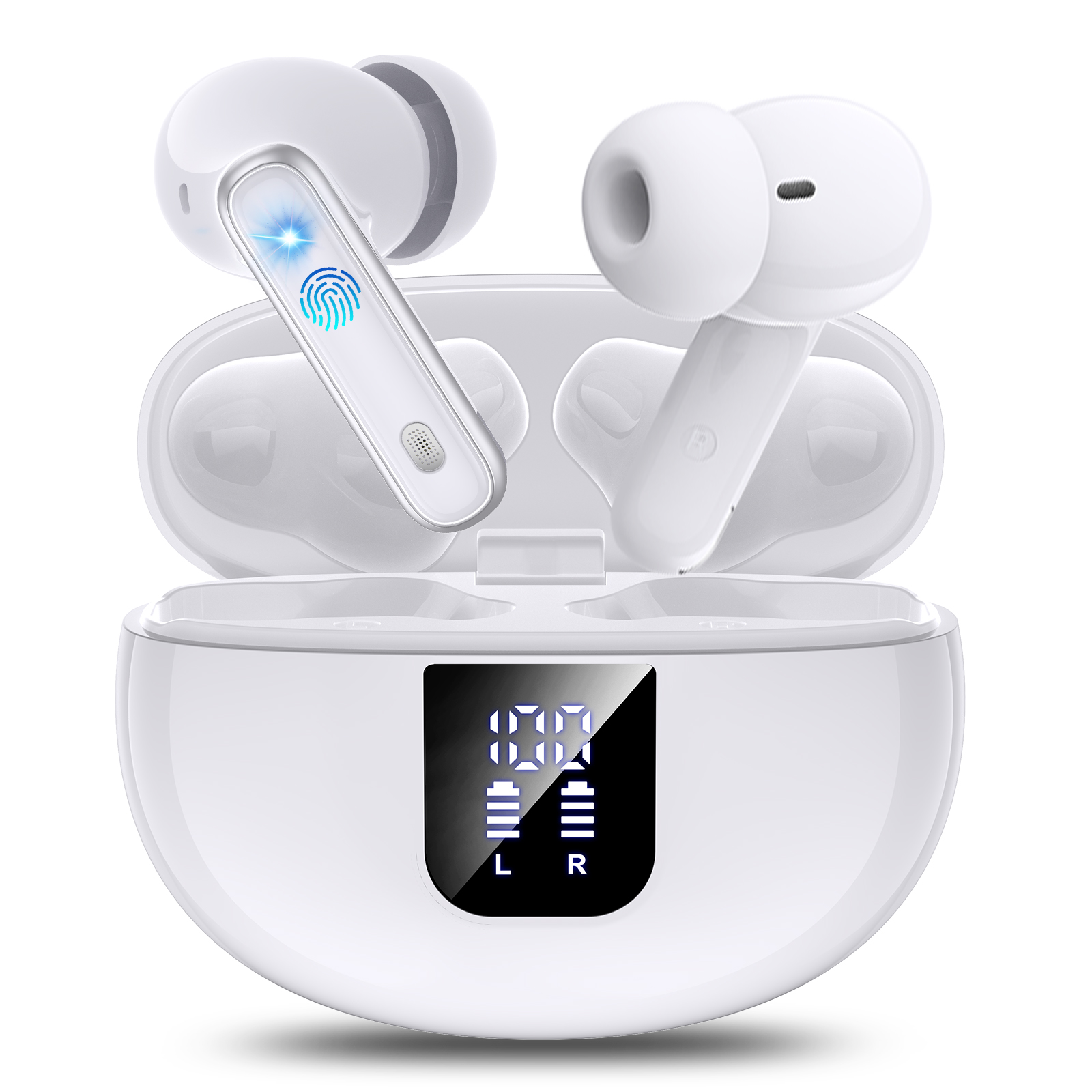 EUQQ Auriculares Inalámbricos Blanco-Bluetooth 5.4 con Modo Transparente,ANC&ENC Cancelación de Ruido Profunda,Micrófono Estéreo,46 Horas de Reproducción,Pantalla LED,IP7 Impermeable