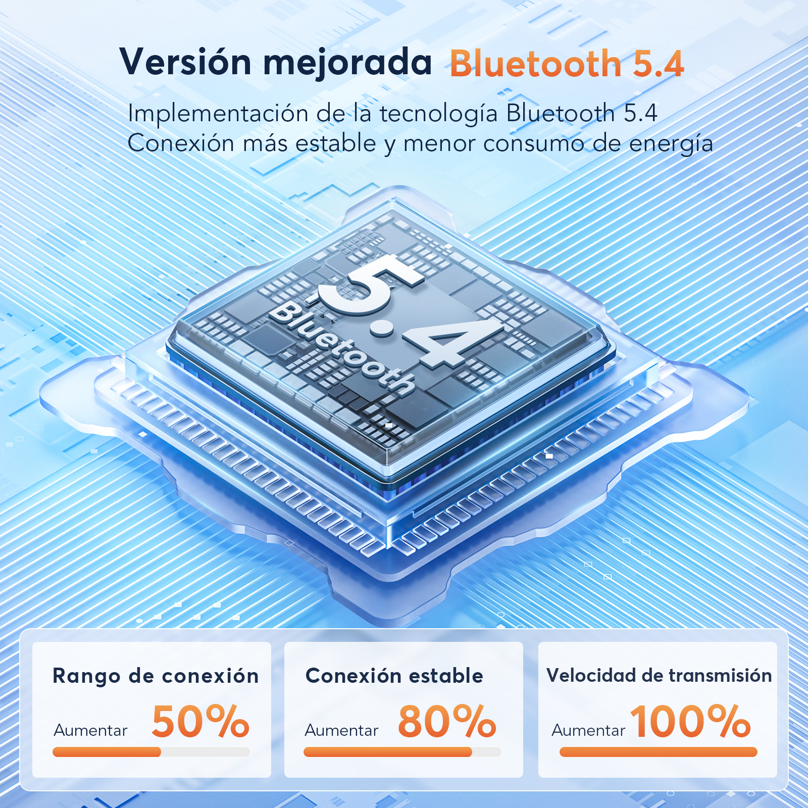 - Revolucionaria tecnología Bluetooth 5.4: Esta innovadora tecnología Bluetooth 5.4 ofrece transmisión de datos ultrarrápida, conexiones ultraestables y un alcance extendido de hasta 15 metros. Disfruta de un audio nítido con mínima latencia, garantizando una sincronización perfecta para música, juegos y llamadas. Con Bluetooth 5.4, tu dispositivo se empareja al instante y se mantiene estable incluso en entornos concurridos. Es el futuro de la libertad inalámbrica, con un rendimiento impecable en cualquier momento y lugar