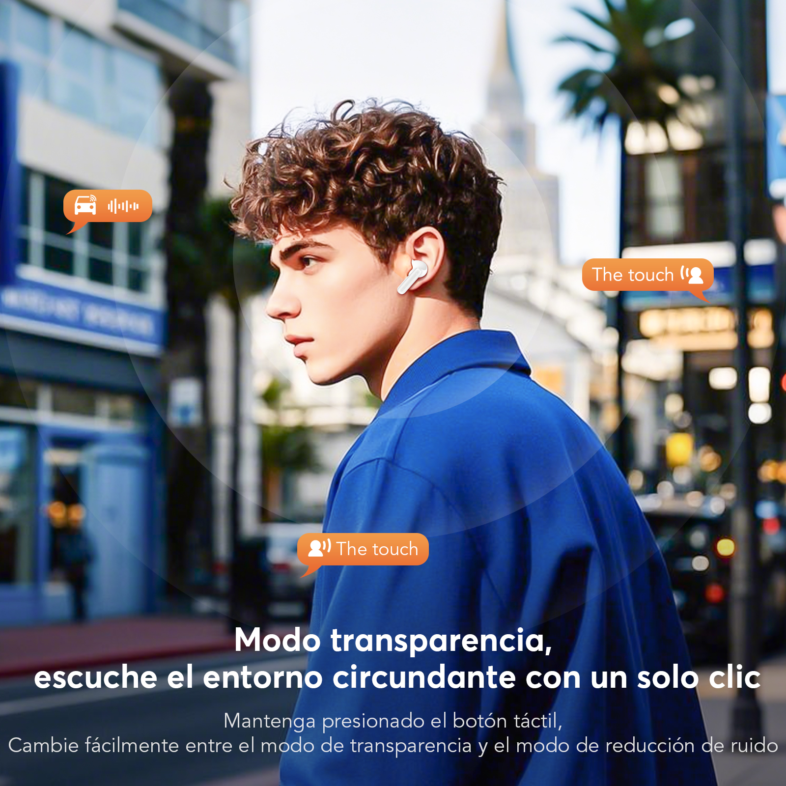 - Tecnología de Modo Transparencia: El modo transparente permite a los usuarios escuchar el entorno, lo que permite una mejor percepción auditiva. Los auriculares captan el sonido ambiental a través del micrófono y lo transmiten al oído a través del altavoz para una percepción clara del entorno. Ofrecen mayor seguridad y un efecto de sonido más natural. Con nuestros YYK-Q10, no es necesario comprar auriculares abiertos por separado.