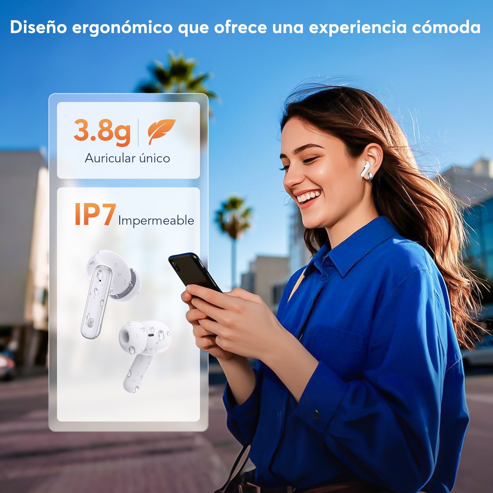 - Comodidad ergonómica y durabilidad a prueba de agua: Diseñados para brindar comodidad durante todo el día, nuestros audífonos cuentan con un ajuste ergonómico y vienen con almohadillas en tamaños S/M/L que se adaptan a cualquier forma de oreja. Con clasificación de impermeabilidad IPX7, son perfectos para entrenar, aventuras al aire libre o desplazamientos bajo la lluvia. Ampliamente compatibles con diversos dispositivos, estos audífonos ofrecen una conectividad perfecta y un rendimiento superior. Ya sea que estés sudando o relajándote, disfruta de una comodidad, durabilidad y versatilidad inigualables en todo momento
